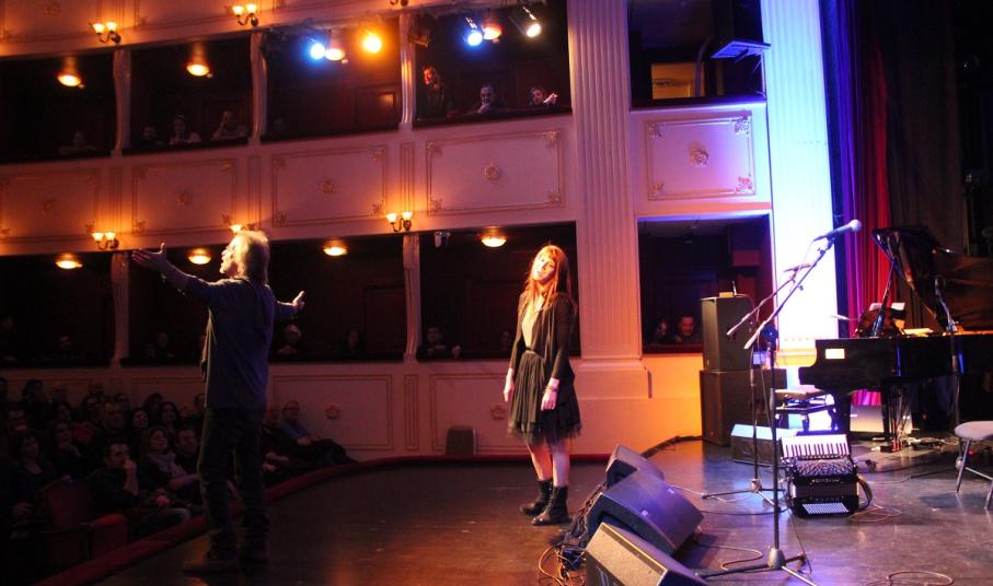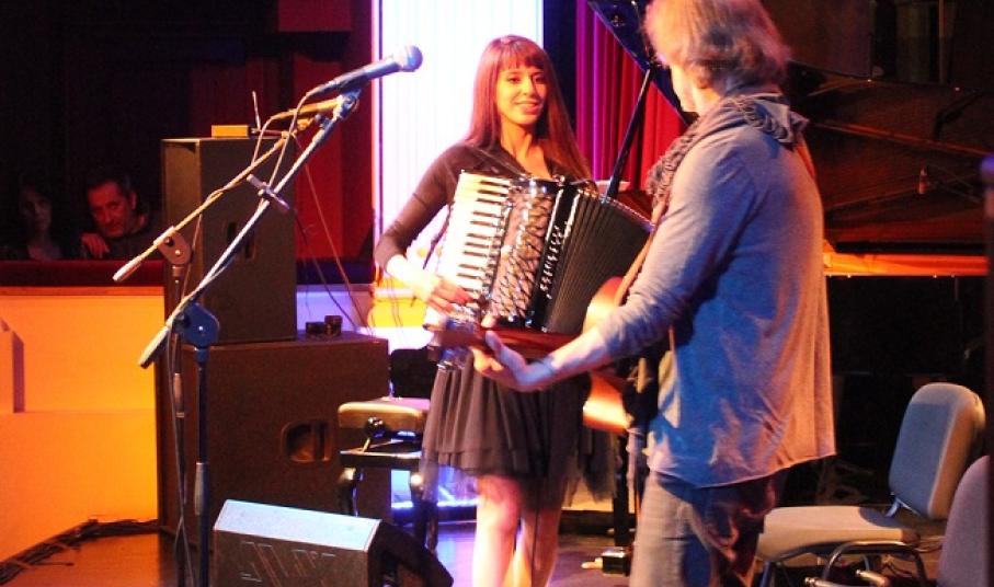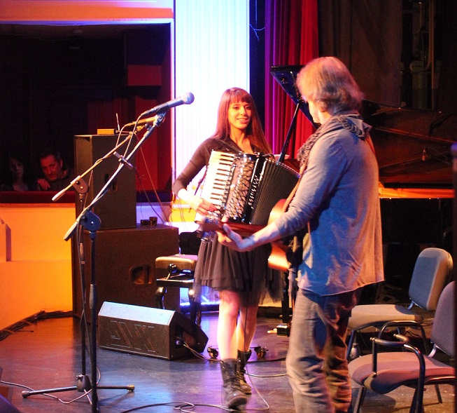 Μαζί του σ' αυτό το παιγνίδι της μνήμης συνέπραξε η νεαρή και πολλά υποσχόμενη Μιρέλα Πάχου, με το πιάνο, το ακορντεόν και τη φωνή της.