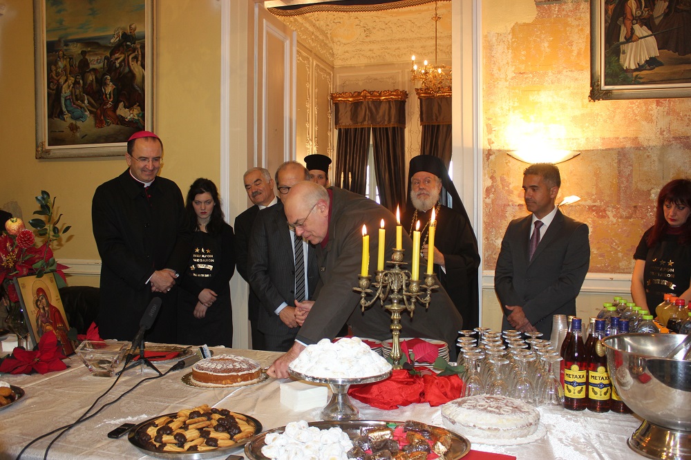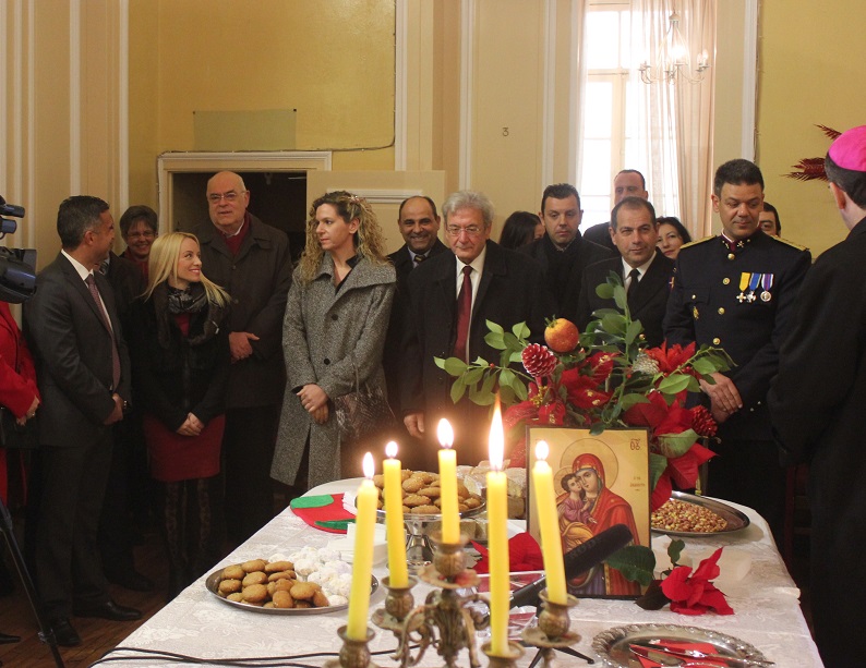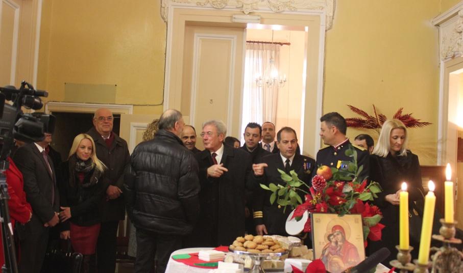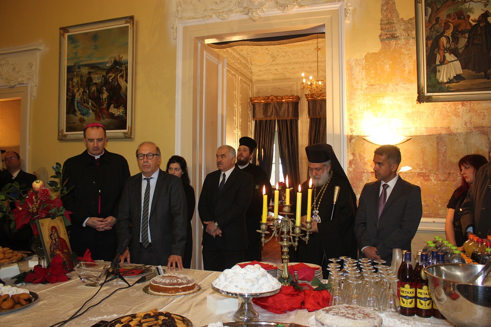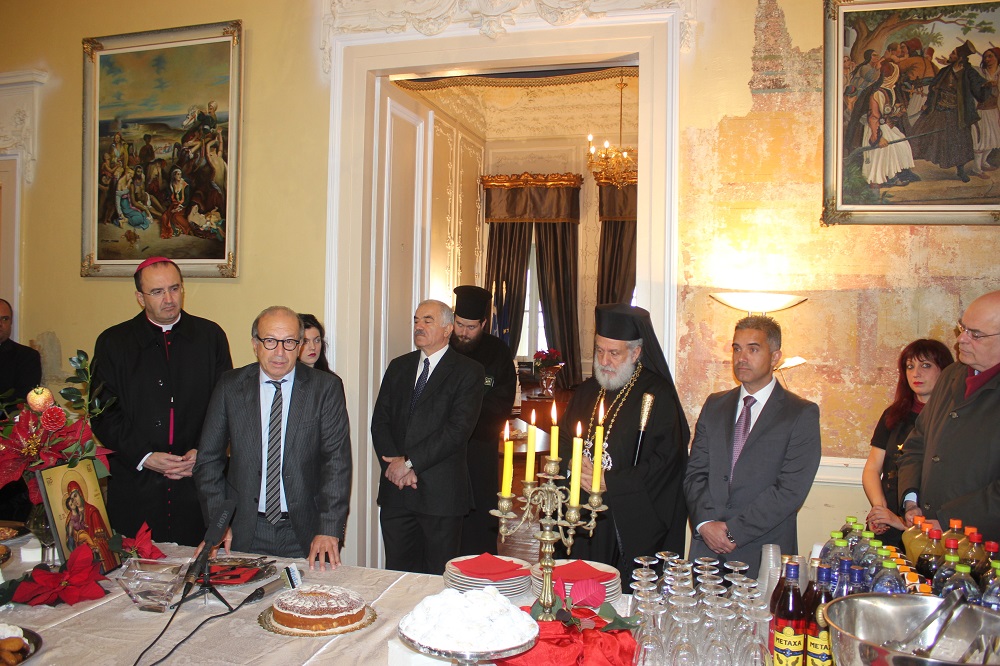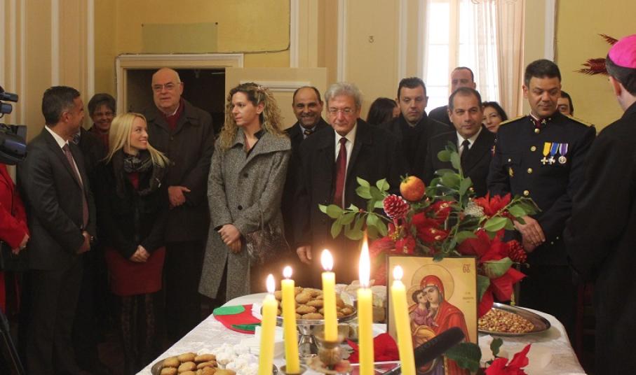 Αμέσως μετά την καθιερωμένη Δοξολογία στον Ιερό Ναό του Αγίου Νικολάου την Πρωτοχρονιά, ο Σεβασμιώτατος Μητροπολίτης Σύρου, κ. Δωρόθεος Β΄, ο Καθολικός Επίσκοπος Σύρου, Σεβ. π. Πέτρος Στεφάνου αλλά και το σύνολο των εκπροσώπων των Τοπικών Αρχών καθώς επίσης και μέλη των Σωμάτων Ασφαλείας μετέβησαν στο ιστορικό κτίριο της Περιφέρειας Νοτίου Αιγαίου, στην πλατεία Τσιροπινά στην Ερμούπολη προκειμένου να χαιρετίσουν την αυγή του νέου χρόνου και να στείλουν μήνυμα ενότητας, συνεργασίας και πολιτική ωρίμανσης, εφόδια που ζητά επιτακτικά σήμερα η οικονομική και κοινωνική πραγματικότητα.