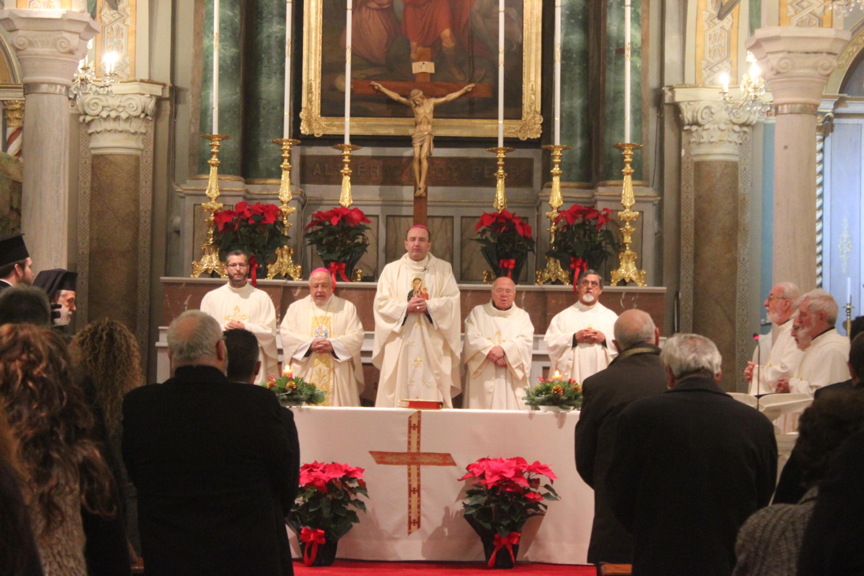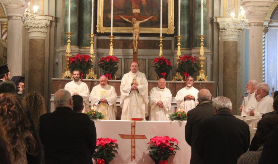Στη Δοξολογία για το Νέο Έτος και την Θεία Ευχαριστία συλλειτούργησαν ο πρώην Καθολικός Επίσκοπος Σύρου Σεβ. π. Φραγκίσκος Παπαμανώλη, ο ιερός κλήρος, ενώ όπως κάθε χρόνο παρέστηστηαν ο Σεβασμιώτατος Μητροπολίτης Σύρου κ. Δωρόθεος Β’ και εκπρόσωποι των τοπικών αρχών.