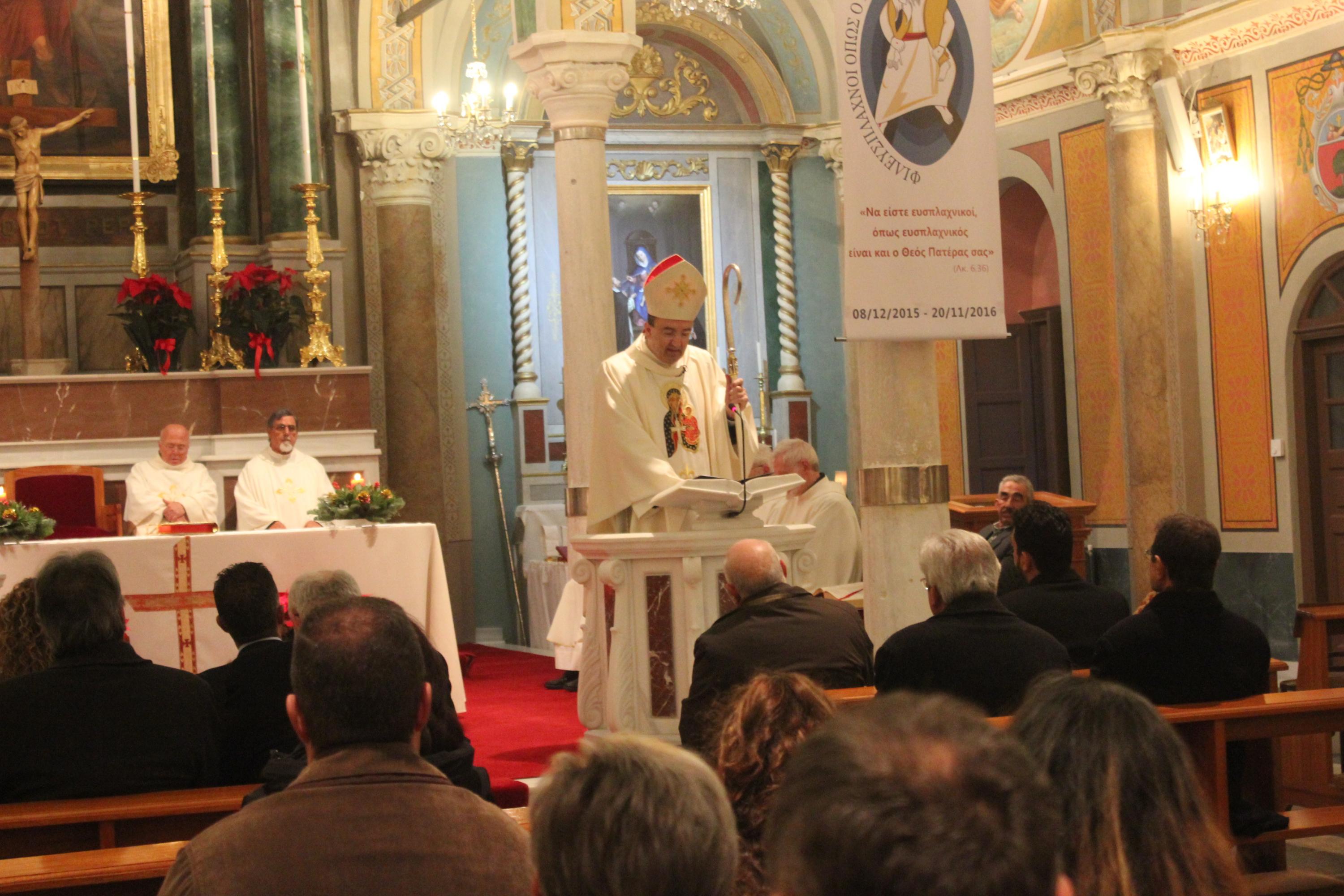 Ερμηνεύοντας τα αναγνώσματα του Θείου Λόγου και συνδέοντάς τα με το μήνυμα που έστειλε ο Πάπας Φραγκίσκος για την 49η Παγκόσμια Ημέρα Ειρήνης με θέμα «Νίκησε την αδιαφορία και κατάκτησε την ειρήνη», ο Σεβασμιώτατος υπογράμμισε ότι η ειρήνη είναι ο καρπός μιας κουλτούρας αλληλεγγύης, ευσπλαχνίας και συμπόνιας για να υπερνικήσουμε το κακό και να μην αφεθούμε στην παραίτηση και την αδιαφορία.