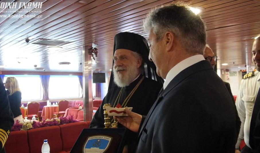 Δεδομένου, ότι στην πρώτη προσέγγισή του στο λιμάνι της Σύρου, την πρώτη ημέρα του 2016, το πλοίο έπρεπε να αναχωρήσει άμεσα, η βράβευση πραγματοποιήθηκε σήμερα.