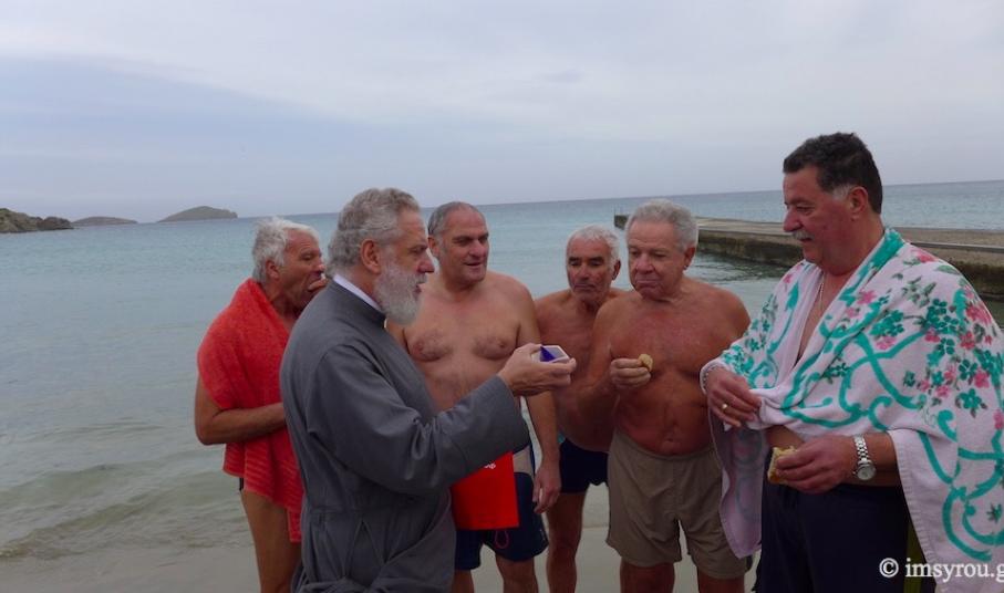 Το μεσημέρι, ο Σεβασμιώτατος κ. Δωρόθεος Β' μετέβη στην παραθαλάσσια περιοχή της Αζολίμνου, όπου έρριψε το Σταυρό στη θάλασσα και ευλόγησε, κατά το έθος, την Αγιοβασιλειόπιττα των χειμερινών κολυμβητών, της οικογένειας των οποίων και ο ίδιος αποτελεί μέλος.