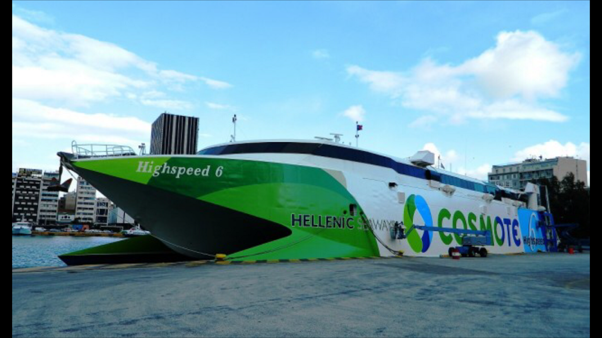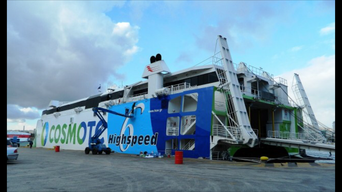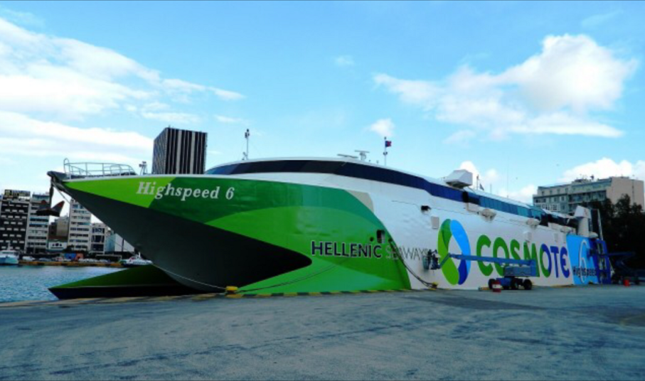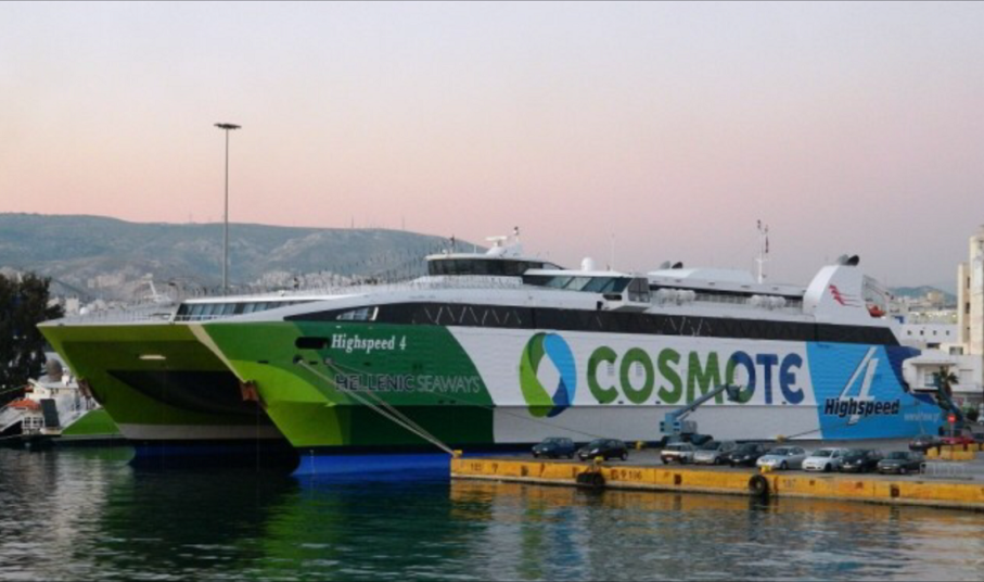 Με το νέο λογότυπο της COSMOTE “ντύθηκαν” τα ταχύπλοα HighSpeed της Hellenic Seaways που εξυπηρετούν τους επιβάτες από και προς το νησιώτικο χώρο, ανανεώνοντας την όψη τους με τα ζωντανά χρώματα που φέρουν στις επιφάνειές τους.