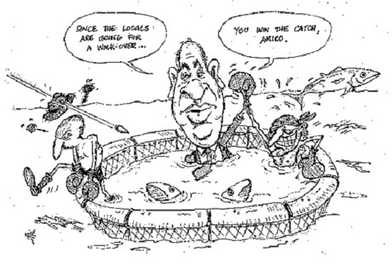 2.Για marketing και επεξεργασία των προϊόντων υδατοκαλλιέργειας και αλιείας 78 εκ. Ποσό που θα πριμοδοτήσει την ανάπτυξη των μεγάλων αλιευτικών επιχειρήσεων σε βάρος του μεροκαματιάρη ψαρά που πουλά τα ψάρια «χέρι – χέρι» και εναποθέτει τις ελπίδες του για επιβίωση σε 5 – 10 «μεγάλες» ψαριές κάθε χρόνο, οι οποίες πλέον με τις ποσοστώσεις θα κινδυνεύουν να χαρακτηριστούν παράνομες. (Όποιος προλάβει τον άλλο, πριν «κλείσει» η ποσόστωση)