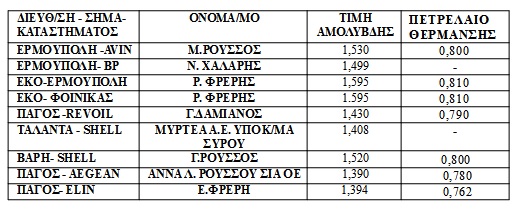 Σημειώνεται ότι η σχετική λίστα αποστέλλεται από την Υπηρεσία κάθε Δευτέρα, η καθημερινή ενημέρωση των αυξομειώσεων των τιμών των καυσίμων δημοσιεύεται στην ιστοσελίδα του Υπουργείου Ανάπτυξης www.Fuelprices.gr.