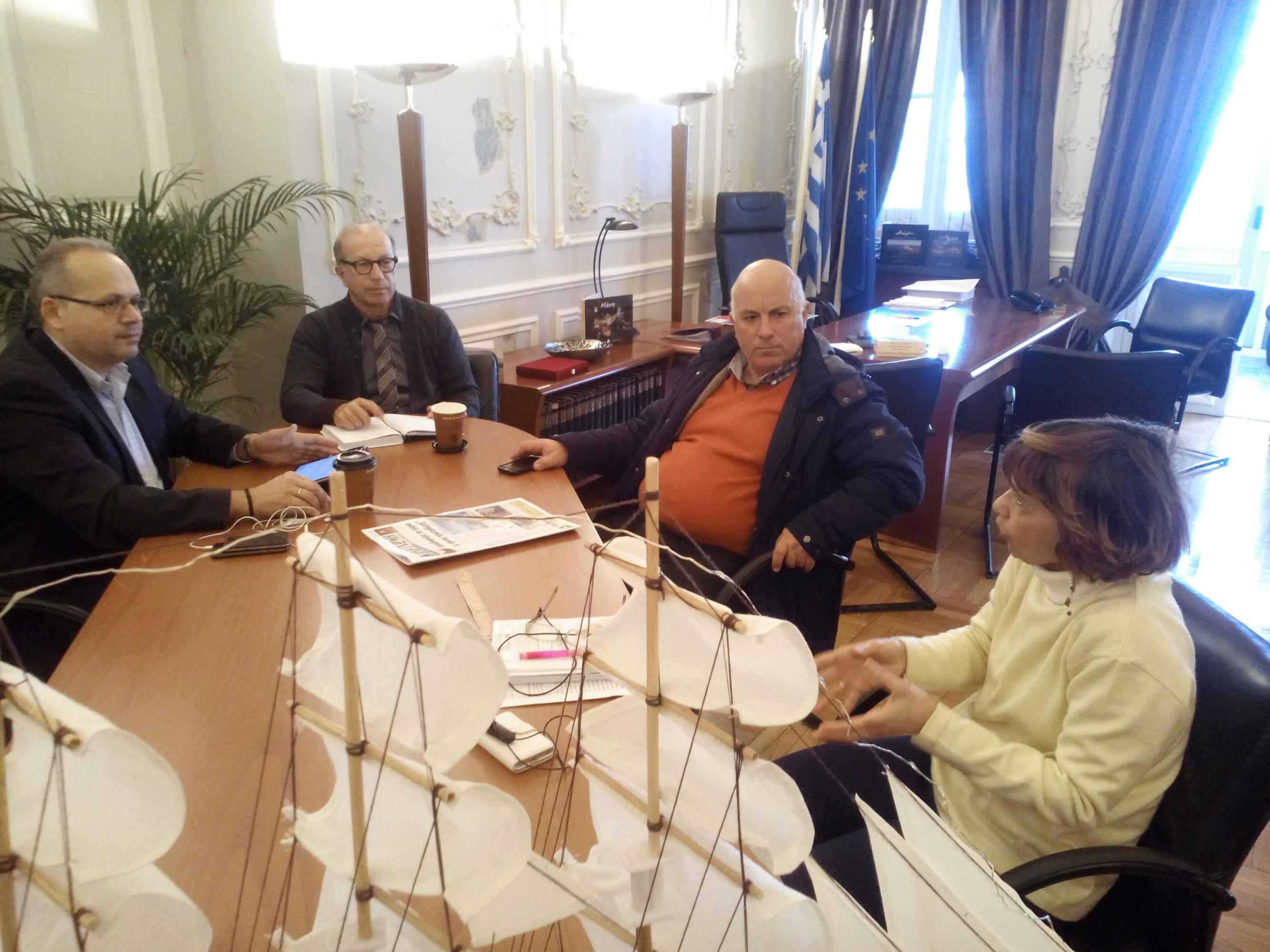 Συνεχίζοντας τη σειρά των συναντήσεων με τους Δημάρχους των Δήμων της Περιφερειακής Ενότητας Κυκλάδων, ο Αντιπεριφερειάρχης Γιώργος Λεονταρίτης είχε, σήμερα το πρωί στο γραφείο του, συνάντηση εργασίας με τον Έπαρχο ΠΕ Μήλου κ. Νικόλαο Βενάκη και τον Δήμαρχο Σίφνου κ. Ανδρέα Μπαμπούνη. Στη συνάντηση συμμετείχε η Διευθύντρια Τεχνικών Έργων Κυκλάδων κα Αδαμαντία Συμεοπούλου και τα στελέχη της υπηρεσίας, Λουκάς Καραδήμος και Κωνσταντίνος Γιολδάσης.