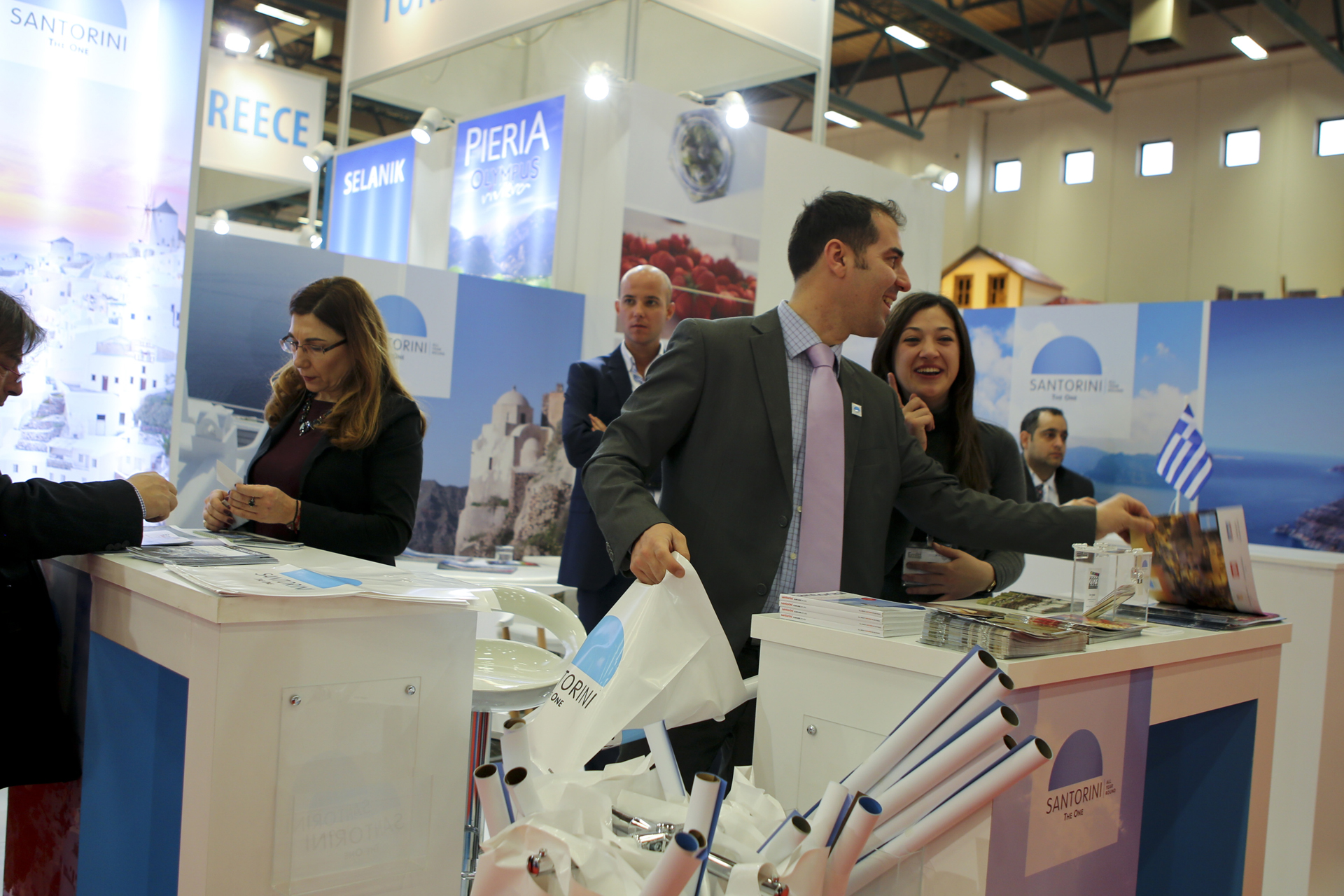 Το διαφημιστικό υλικό που διανέμεται για την Σαντορίνη είναι στην τουρκική γλώσσα, όπου συμπεριλαμβάνονται τρία θεματικά έντυπα για την Γαστρονομία, τον Πολιτισμό/Ιστορία και τις Δραστηριότητες που προσφέρει το νησί μας στους επισκέπτες. Ταυτόχρονα οι επισκέπτες του περιπτέρου έχουν τη δυνατότητα να δοκιμάσουν και τα τοπικά προϊόντα της Σαντορίνης (ντομάτα/πελτές, κάπαρη, κρασί ασύρτικο).