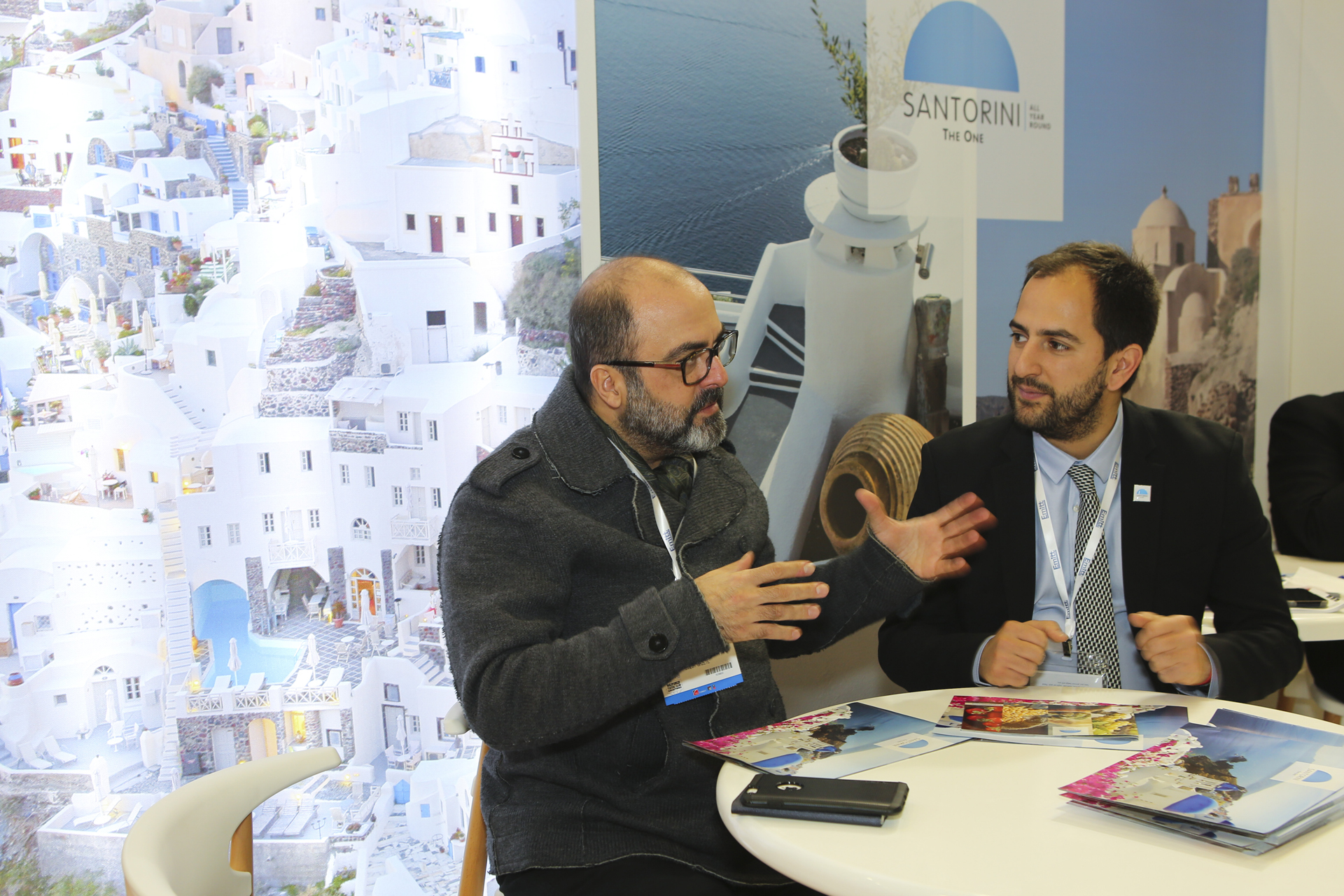 Το Δήμο Θήρας εκπροσωπεί ο κος Λουκάς Μπελλώνιας και ο χώρος της παρουσίασης είναι στελεχωμένος από το εξειδικευμένο προσωπικό της εταιρείας που οργάνωσε την παρουσίαση στην έκθεση, Tourist Guide Of Greece.