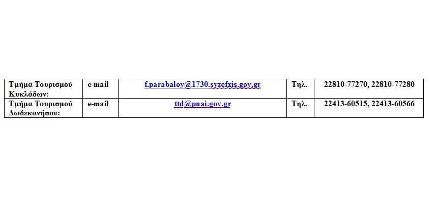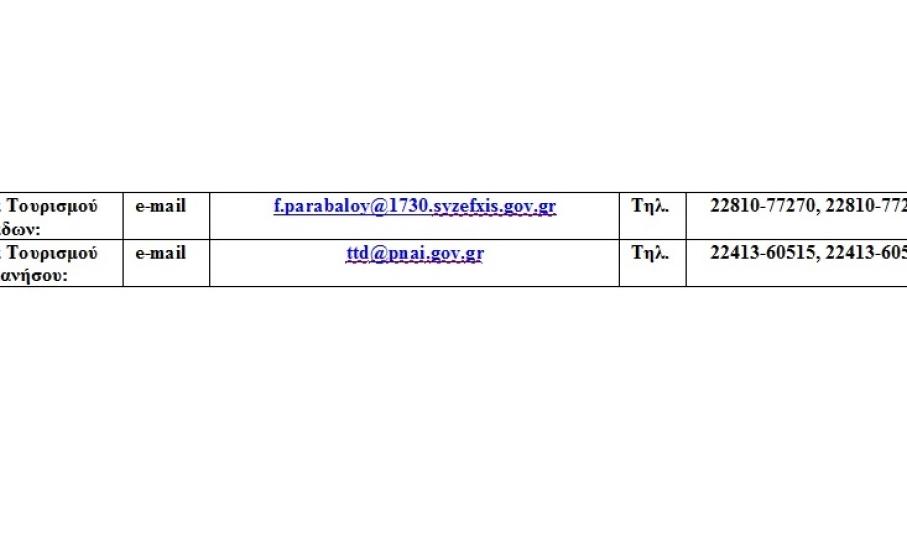 Όσοι λοιπόν από τους φορείς ή τους ΟΤΑ επιθυμούν να λάβουν μέρος στις ανωτέρω τουριστικές εκθέσεις, καλούνται να επικοινωνήσουν στα στοιχεία επικοινωνίας της Διεύθυνσης Τουρισμού της ΠΝΑΙ τα οποία αναφέρονται στον επισυναπτόμενο πίνακα.