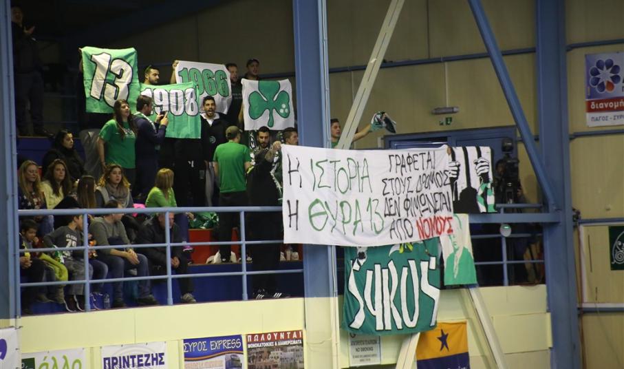 Το “παρών” στο κλειστό για να παρακολουθήσουν την ομάδα τους έδωσαν και οι φίλοι του τριφυλλιού που χθες ήταν μία ιδιαίτερη μέρα γι' αυτούς, αφού ο Παναθηναϊκός γιόρταζε τα 108 χρόνια από την ιστορική ίδρυση του από τον Γεώργιο Καλαφάτη. Οι πράσινοι παίκτες αποθεώθηκαν από τους φίλους τους και στο τέλος οι αθλητές του κ. Ανδρεάδη τους ευχαρίστησαν για την στήριξή τους καθ΄ όλη τη διάρκεια του ματς.