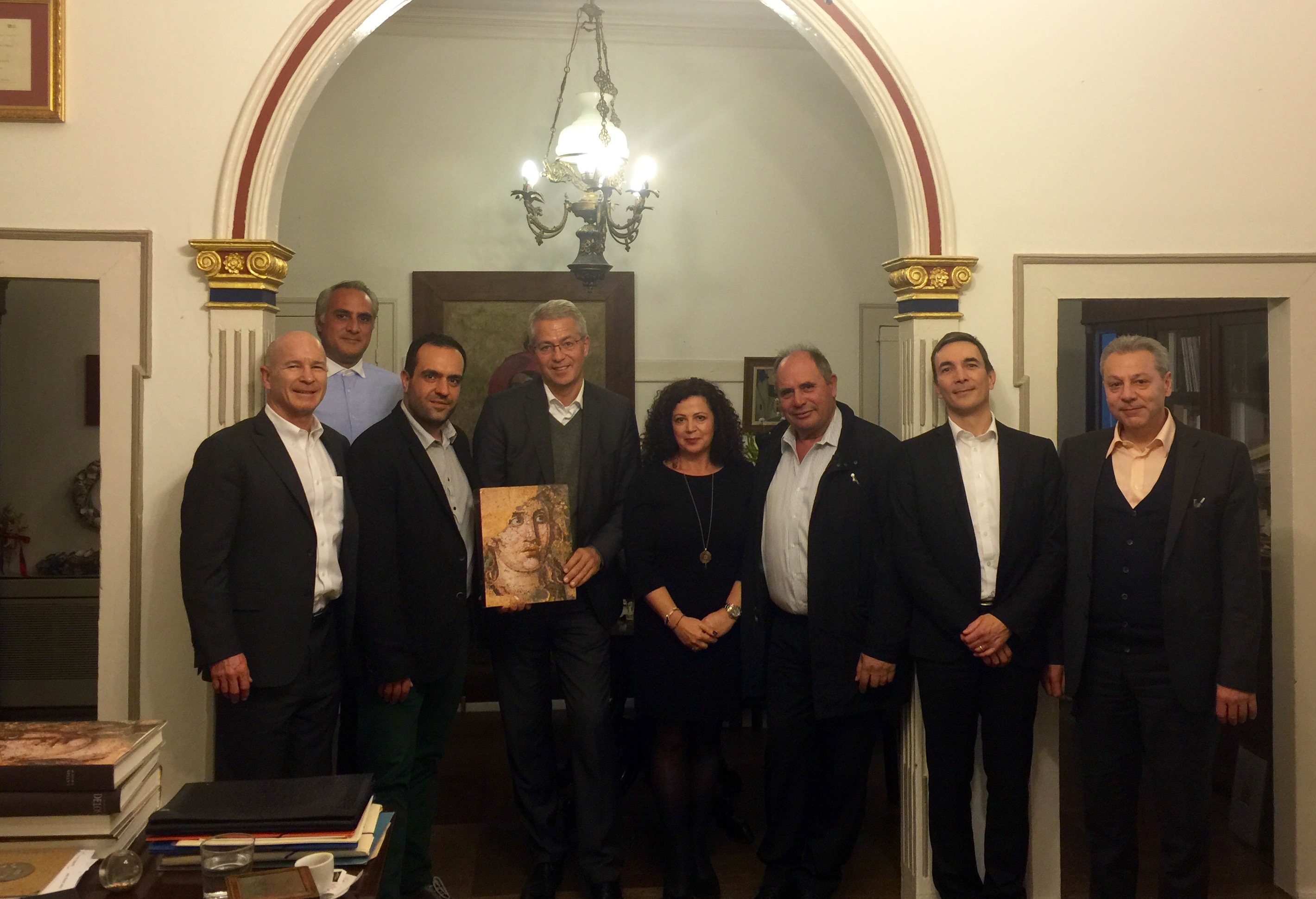 Την κοινοπραξία εκπροσώπησαν μεταξύ άλλων ο πρόεδρος του διοικητικού συμβουλίου Dr. Stefan Schulte, ο προϊστάμενος του τεχνικού τμήματος Christoph Nanke, η προϊσταμένη του τεχνικού τμήματος Καλλιόπη Μεγαλομίδου και ο Κώστας Παπακωνσταντίνου Διευθυντής τμήματος ανάπτυξης του ομίλου Κοπελούζος. Παρόντες στη συζήτηση με τον Δήμαρχο Μυκόνου ήταν και ο αντιδήμαρχος Νίκος Γκέλος καθώς και ο δημοτικός σύμβουλος και πρόεδρος του σωματείου ξενοδόχων Μιχάλης Αποστόλου.