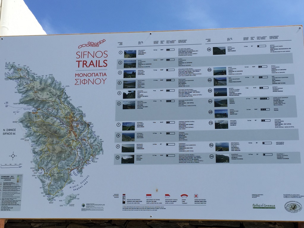 Τα κείμενα, οι φωτογραφίες, οι διαδρομές και η χαρτογραφία είναι πρωτότυπο υλικό που έχει συλλεγεί από την Paths of Greece με τη συνεργασία και βοήθεια εθελοντών από το νησί. Η Paths of Greece έχει αναλάβει την αναβάθμιση των μονοπατιών της Σίφνου στα πλαίσια του προγράμματος ανάπτυξης Πεζοπορικού Τουρισμού στο νησί, πρόγραμμα που υλοποιείται από το Δήμο Σίφνου, με εξαιρετικά έως τώρα αποτελέσματα.