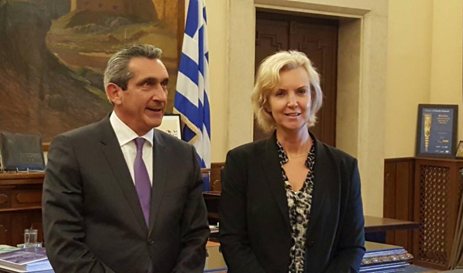 Την Πρέσβη της Σουηδίας στην Ελλάδα κα Charlotte Wrangberg υποδέχθηκε σήμερα, Δευτέρα, στο γραφείο του ο Περιφερειάρχης Νοτίου Αιγαίου κ. Γιώργος Χατζημάρκος, στο πλαίσιο εθιμοτυπικής επίσκεψης.