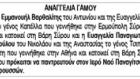 Αναγγελία Γάμου Παπανικολάου Χρήστου και Λαγού Αναστασίας