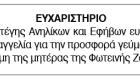 Ευχαριστήριο για δωρεές από την Φιλόπτωχο Αδελφότητα Κυριών Ενορίας Κοιμήσεως