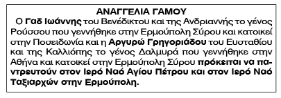 Αναγγελία Γάμου Γαδ Ιωάννη και Γρηγοριάδου Αργυρώς