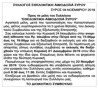 Εκλογές για νέο Διοικητικό Συμβούλιο της Εθελοντικής Αιμοδοσίας Σύρου