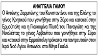 Αναγγελία Γάμου Ζαρμπώνη Αντώνη και Πλυτά Γιακουμίνας