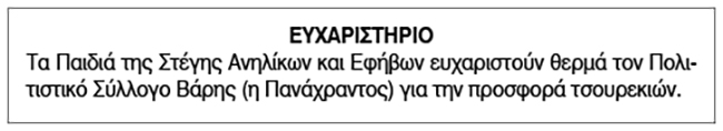 Ευχαριστήριο από τη Στέγη Ανηλίκων και Εφήβων