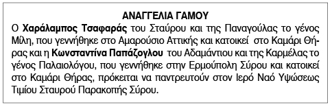 Αναγγελία Γάμου Χαράλαμπου Τσαφαρά και Κωνσταντίνας Παπάζογλου