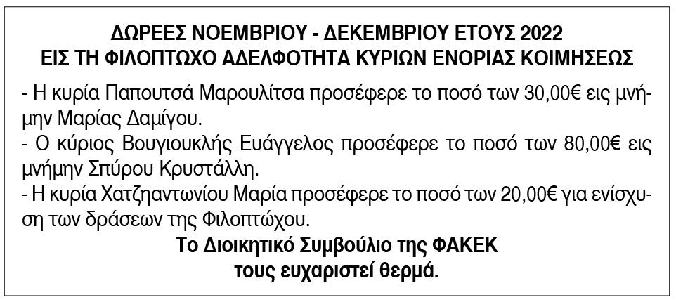 Φιλόπτωχος Αδελφότητα Κυριών Ενορίας Κοιμήσεως, Δωρεές