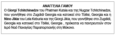 Αναγγελία γάμου για Giorgi Tchitchinadze και Nino Jikia