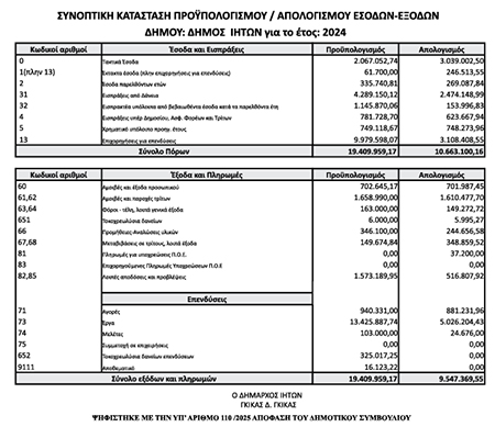 Συνοπτική κατάσταση Προϋπολογισμού Απολογισμού εσόδων - εξόδων 2024