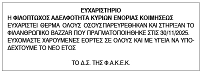 Ευχαριστήριο για το παζάρι τους από τη Φιλόπτωχο Αδελφότητα Κυριών Ενορίας Κοιμήσεως