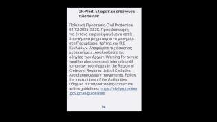 Στις 4 Δεκεμβρίου 2025 η Πολιτική Προστασία εξέδωσε επείγουσα ειδοποίηση, ενημερώνοντας τους πολίτες των Κυκλάδων και της Κρήτης για επικείμενα έντονα καιρικά φαινόμενα που θα…