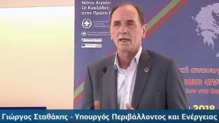 Ο Δήμαρχος Σύρου – Ερμούπολης κ. Γιώργος Μαραγκός, κατά τον χαιρετισμό του, στην έναρξη του 15ου Περιφερειακού Συνεδρίου για την Παραγωγική Ανασυγκρότ...