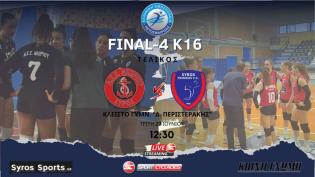 Παρακολουθήστε σε ζωντανή μετάδοση από το κλειστό γυμναστήριο ''Δ. Περιστεράκης'' στη Νάξο τον Τελικό Βόλεϊ του Final - 4 της Κ16 μεταξύ του ΑΣΕ Νεωρί...
