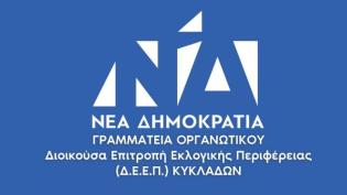 Συνεδριάζει η ΔΕΕΠ Κυκλάδων της Ν.Δ. στο ξενοδοχείο "Διογένης" το Σάββατο, 6 Νοεμβρίου. Δείτε αναλυτικά την πρόσκληση του προέδρου της, Χρήστου Κα...