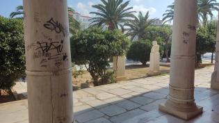 Συνθήματα και γκράφιτι υποβαθμίζουν την εικόνα του ιδιαίτερου κτιρίου στην πλατεία Μιαούλη