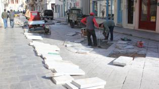 Κλειστό παρέμεινε χθες τμήμα της οδού Ερμού, πλησίον της πλατείας Μιαούλη, όπου πραγματοποιήθηκαν εργασίες για την αποκατάσταση των μαρμάρινων πλακών ...