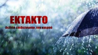 Έκτακτο δελτίο επιδείνωσης του καιρού εξέδωσε η ΕΜΥ, προειδοποιώντας για θυελλώδεις ανέμους και ισχυρές βροχές και καταιγίδες το Σαββατοκύριακο, παράλ...
