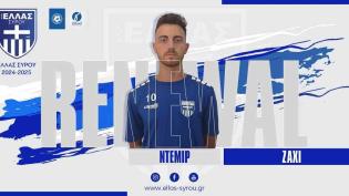Τα χρώματα της Ελλάς Σύρου θα συνεχίσει να φορά και τη νέα αγωνιστική περίοδο ο Ντεμίρ Ζάχι. Ο 22χρονος ποδοσφαιριστής, ο οποίος διακρίθηκε με τις εμφ...