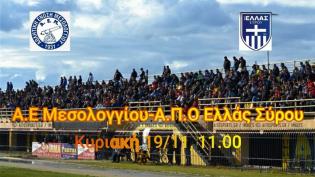 Δείτε την Κυριακή (19/11) ζωντανά τον αγώνα για την 11η αγωνιστική της Γ Εθνικής ανάμεσα στην Α.Ε Μεσολογγίου και την Ελλάς Σύρου.