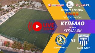 Παρακολουθήστε σε ζωντανή μετάδοση από το γήπεδο των Φηρών τον αγώνα της 4ης φάσης του του Κυπέλλου της ΕΠΣ Κυκλάδων μεταξύ του Πανθηραϊκού και της Ελ...