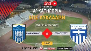 Παρακολουθήστε σε ζωντανή μετάδοση από το ΔΑΚ Νάξου την αναμέτρηση της 12ης αγωνιστικής της Α' κατηγορίας της ΕΠΣ Κυκλάδων μεταξύ του Πανναξιακού και ...