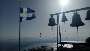 Η Ελληνική σημαία κυματίζει ψηλά στα Φηρά. Κούρτης Πάρης