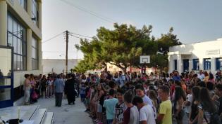 Τα προαύλια των Νηπιαγωγείων και των Δημοτικών Σχολείων της Σύρου “πλημμύρισαν” με παιδικές φωνές σήμερα το πρωί, οπότε και τελέσθηκε ο καθιερωμένος αγιασμός για την έναρξη του…