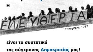 Η επέτειος του Πολυτεχνείου είναι μια ημέρα ιστορικής μνήμης. Είναι μια ημέρα γιορτής της ελευθερίας και της δημοκρατίας, που δεν τιμάται μόνο σήμερα....