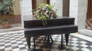 Νέα υποστυλώματα συγκρατούν πλέον το πιάνο – αντίκα που απέκτησε μέσω δωρεάς ο Δήμος Σύρου – Ερμούπολης και τοποθέτησε στο αίθριο του Δημαρχιακού Μεγά...