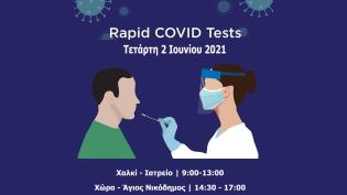 Ενημερώνουμε ότι οι Κινητές Ομάδες Υγείας (ΚΟΜΥ) του ΕΟΔΥ , θα πραγματοποιούν δωρεάν δειγματοληπτικούς ελέγχους ταχείας ανίχνευσης αντιγόνου με “rap...