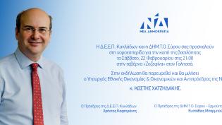 Τη Σύρο αναμένεται να επισκεφθεί το Σάββατο 22 Φεβρουαρίου, ο υπουργός Εθνικής Οικονομίας, Κωστής Χατζηδάκης, προκειμένου να παρευρεθεί στην εκδήλωση ...