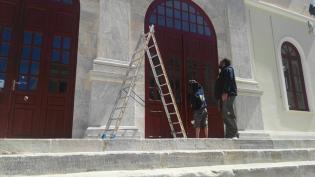 Ολοκληρώνονται οι εργασίες βαψίματος των κουφωμάτων της πρόσοψης του ιστορικού θεάτρου “Απόλλων”, στο πλαίσιο της εργολαβίας που είχε ο Δήμος Σύρου – ...