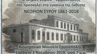 Η έκθεση «ΝΕΩΡΙΟΝ ΣΥΡΟΥ (1861 – 2018)» συνεχίζεται έως τις 30 Απριλίου 2019, στο Βιομηχανικό Μουσείο. Αντικείμενο της έκθεσης είναι η ιστορία του ...