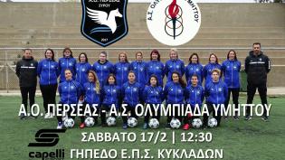 Φιλικό αγώνα έχει προγραμματίσει το νεοσύστατο σωματείο ποδοσφαίρου γυναικών του Α.Ο. ΠΕΡΣΕΑ Σύρου με την ομάδα του Α.Σ. Ολυμπιάδας Υμηττού αυτό το Σά...