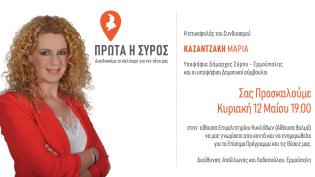 Ιδιαίτερα εποικοδομητική και ενδιαφέρουσα ήταν η συνάντηση, που είχε η υποψήφια δήμαρχος Σύρου – Ερμούπολης κα. Μαρία Καζαντζάκη, την Τρίτη 30/04/2019...