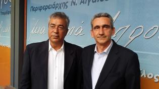 Ο υποψήφιος Περιφερειάρχης Ν. Αιγαίου κ. Γιώργος Χατζημάρκος, ο χωρικός Αντιπεριφερειάρχης Κυκλάδων κ. Γιώργος Λεονταρίτητς, ο χωρικός Αντιπεριφερειάρ...